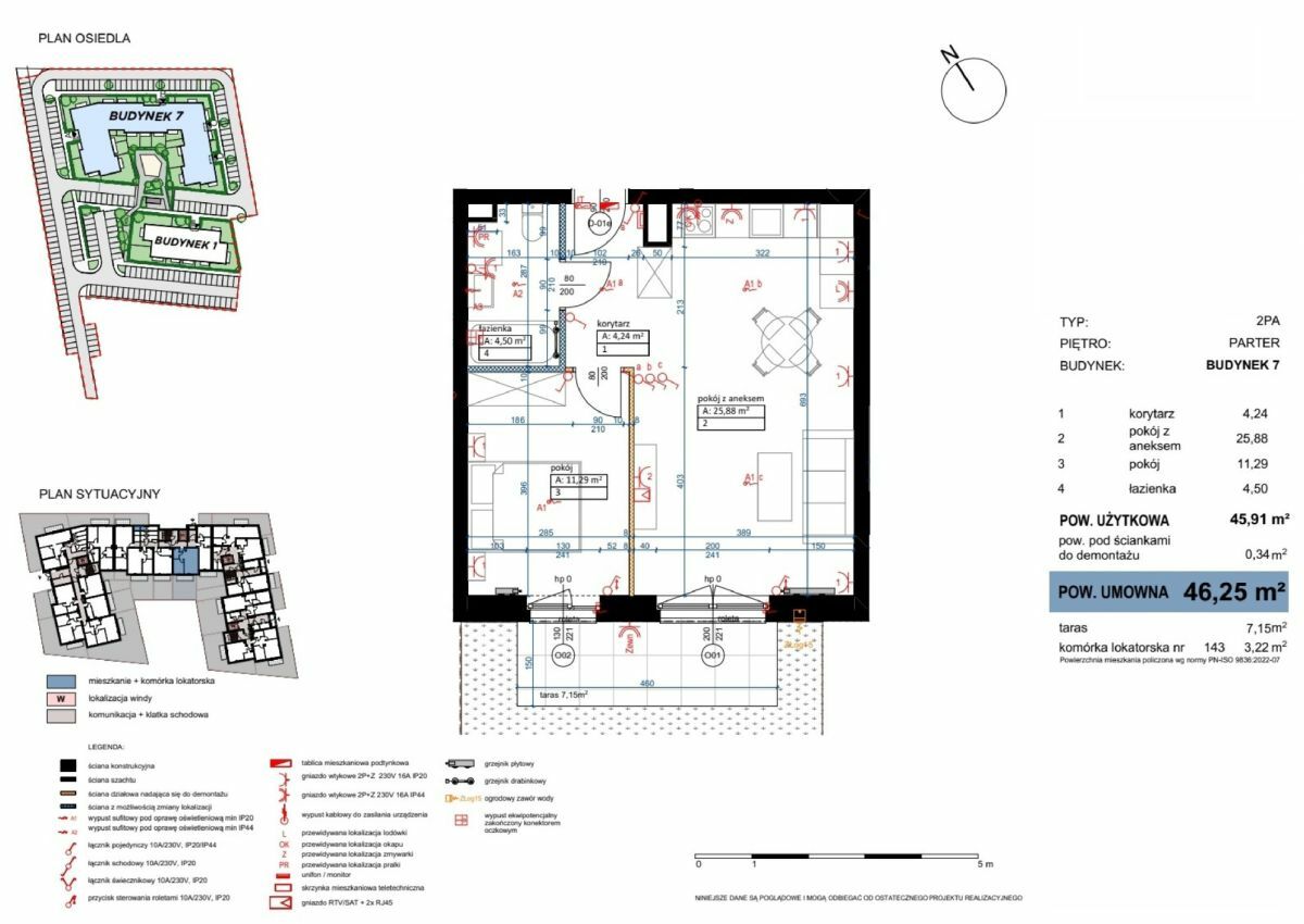 Powierzchnia całkowita 46.25 m2:,